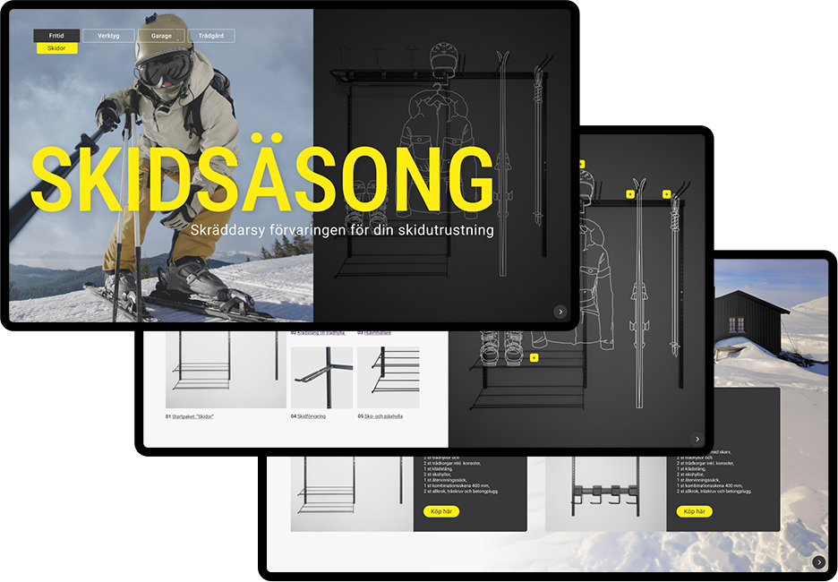 Gör vinterhalvåret lite enklare med smart och trygg skidförvaring från Tellbe förvaringssystem. Här möts kvalitet, funktion och stil i lösningar som håller ordning på allt från längdskidor och slalomutrustning till stavar, pjäxor och hjälmar. Oavsett om du har en egen stuga med skidbod, bor i villa, radhus eller lägenhet kan du skapa en skräddarsydd förvaringslösning som utnyttjar varje centimeter på bästa sätt.